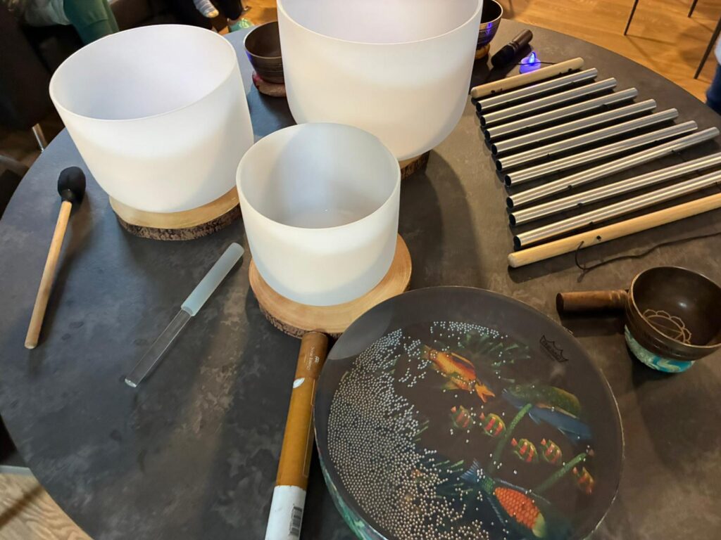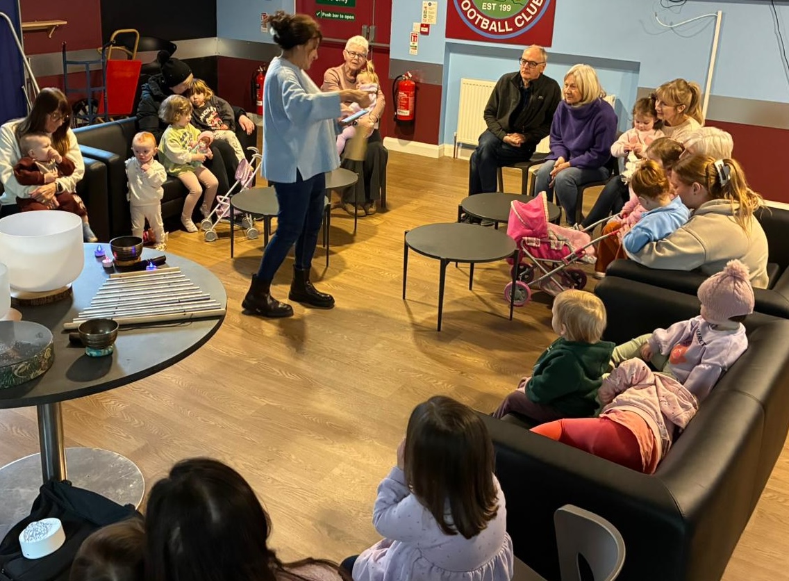 Great fun at Tea & Tots this morning as Gail showed everyone how to make some noise with musical instrument sound baths!
